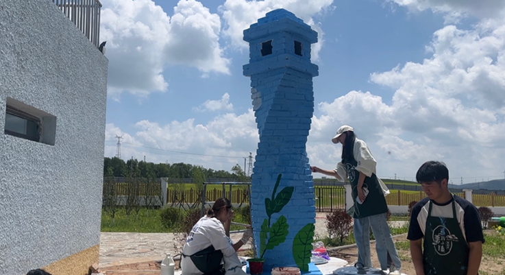 黄盖淖镇在发展经济的同时,加大生态保护力度,大力发展新能源产业,在头百户村建设2200亩光伏园区。实践团成员结合当地自然风光,深入挖掘产业故事,进行了研学基地的修缮工作,开展“创意农产品‘上墙’、传统灶具‘上色’、乡村实景‘入画’”系列活动。实践团成员还带领小朋友们共画“美丽乡村新画卷”,在小朋友们的心中埋下建设家乡、振兴乡村的种子。