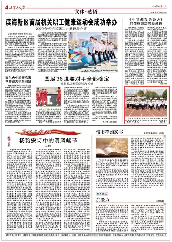 10月19日,《天津工人报》报道学校“放下手机、走出宿舍、走向操场”系列主题跑步活动。学校日前开展“放下手机、走出宿舍、走向操场”系列主题跑步活动,700余名师生激情开跑,成为校园中一道亮丽的风景线。
