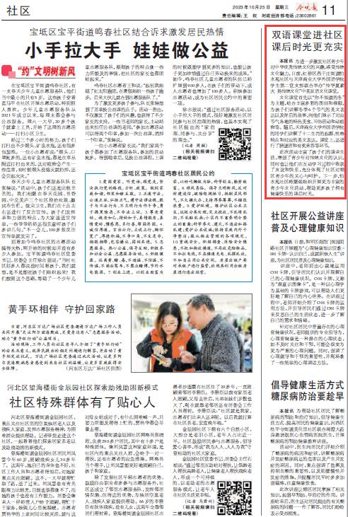 10月25日,《今晚报》报道beat365官网外国语学院学生第二党支部与红桥区西于庄街道怡水苑社区联合举办“传华夏薪火扬传统文化”中英双语文化课堂。