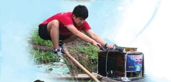 天津理工大学机械工程学院“青智汇”实践团在宁河区北淮淀镇养殖户的虾塘里测试。