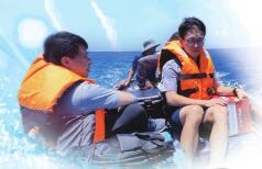 南开大学“师生四同”实践队师生在赶赴传感系统安装岛礁地点的途中。