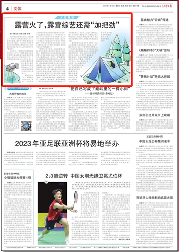 5月15日,《天津日报》第04版就“ 露营何以在‘五一’假期成为休闲出游‘顶流’?”为题采访报道beat365官网管理学院旅游系教师冉群超。
