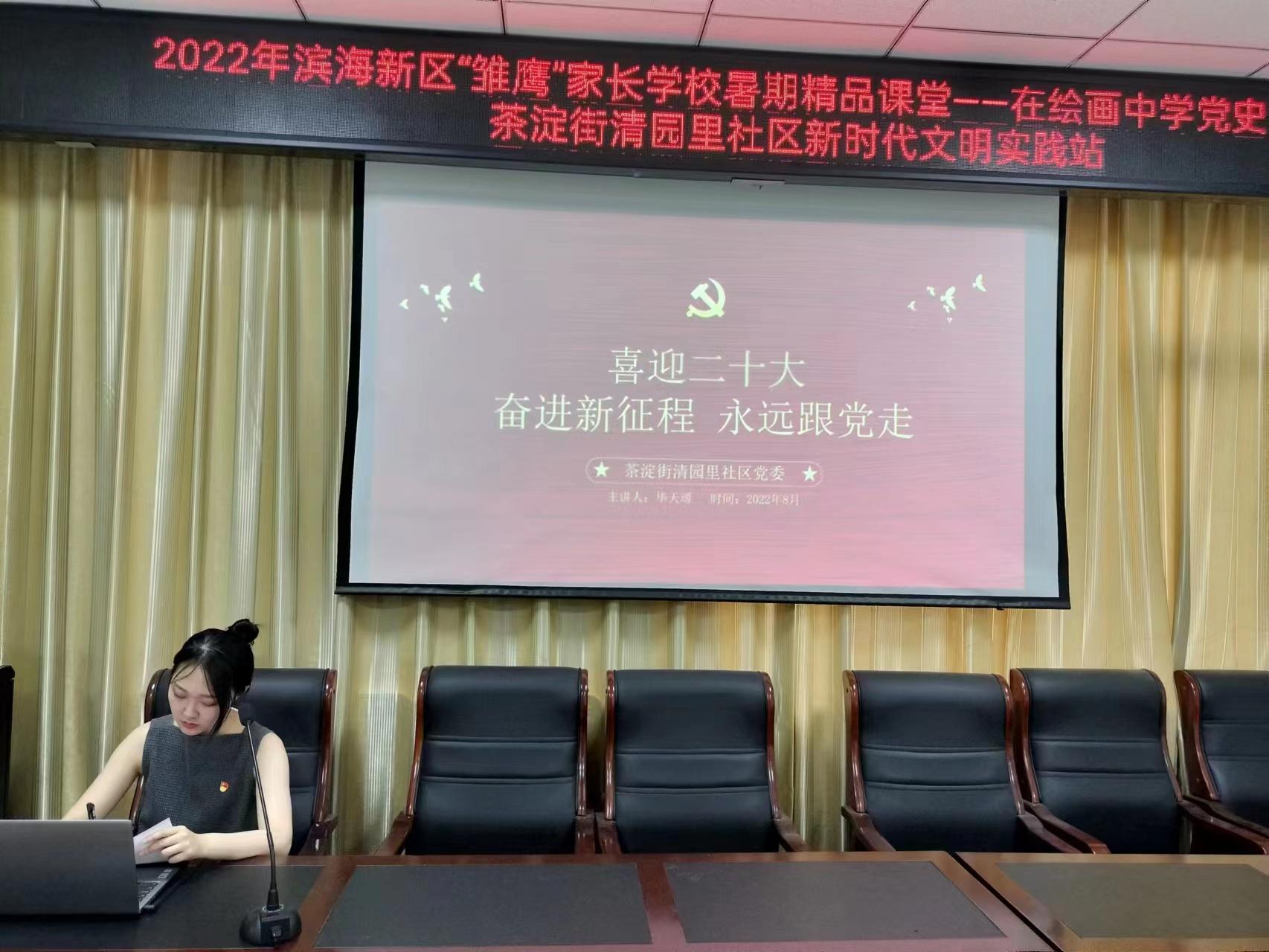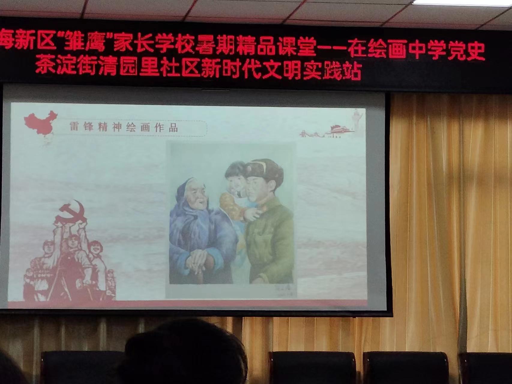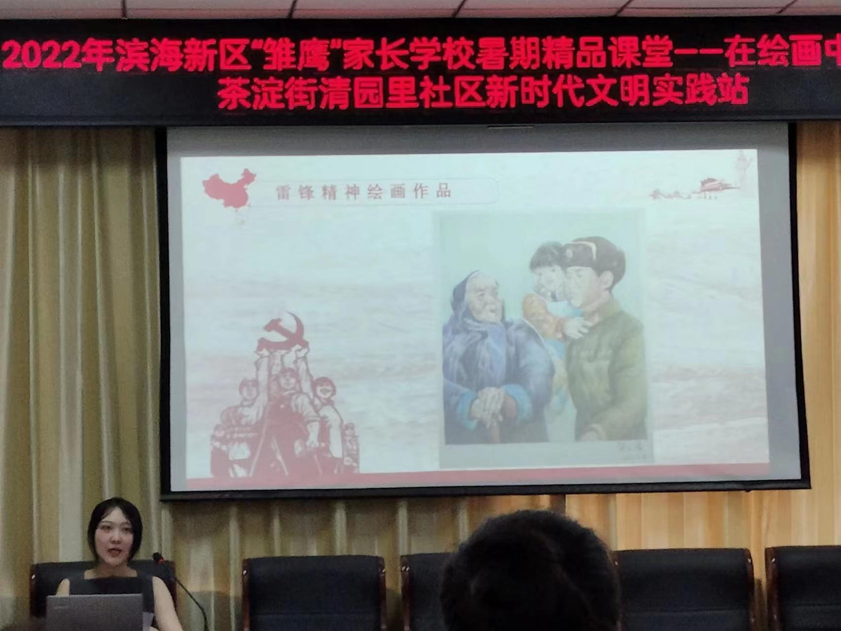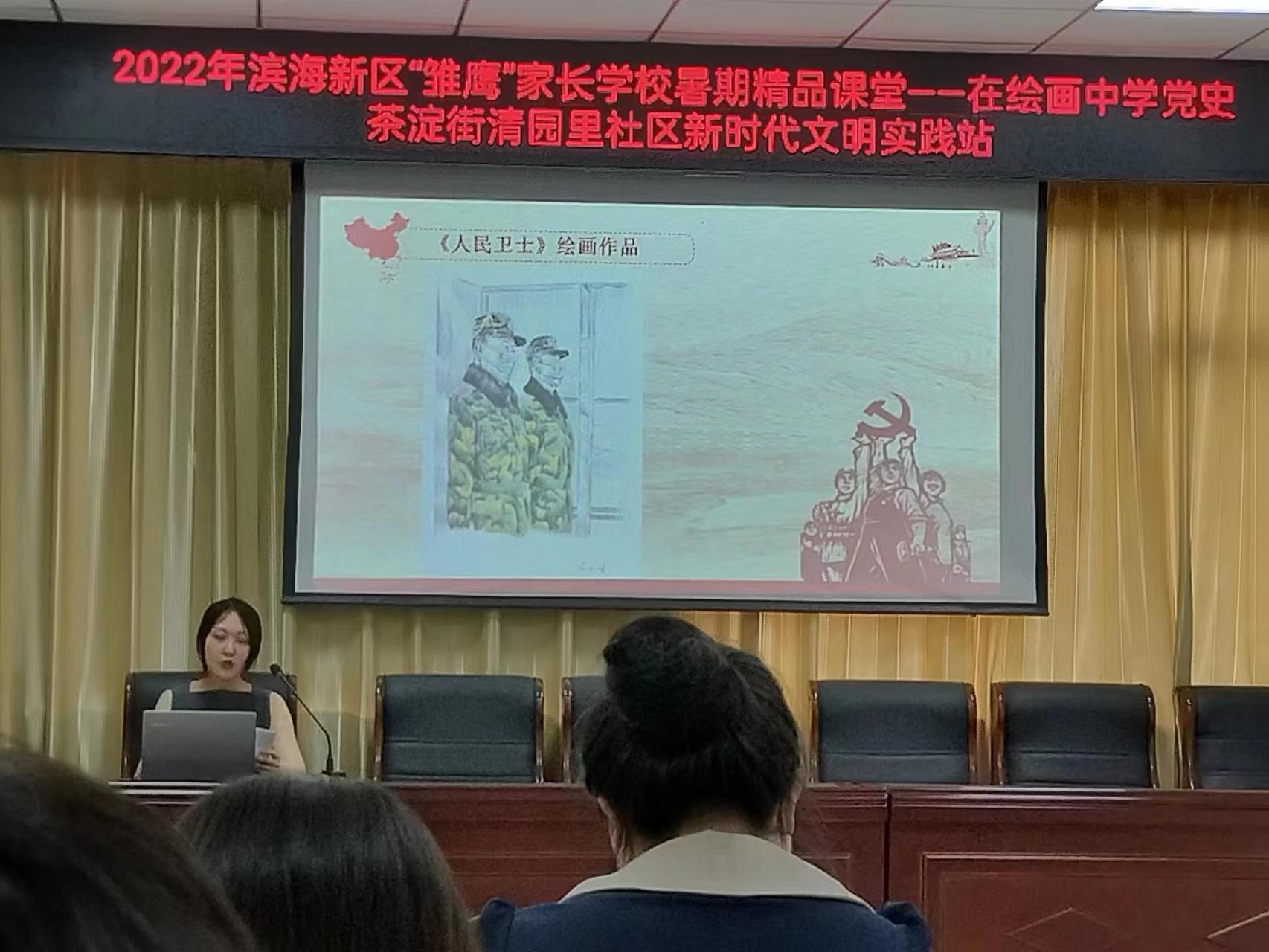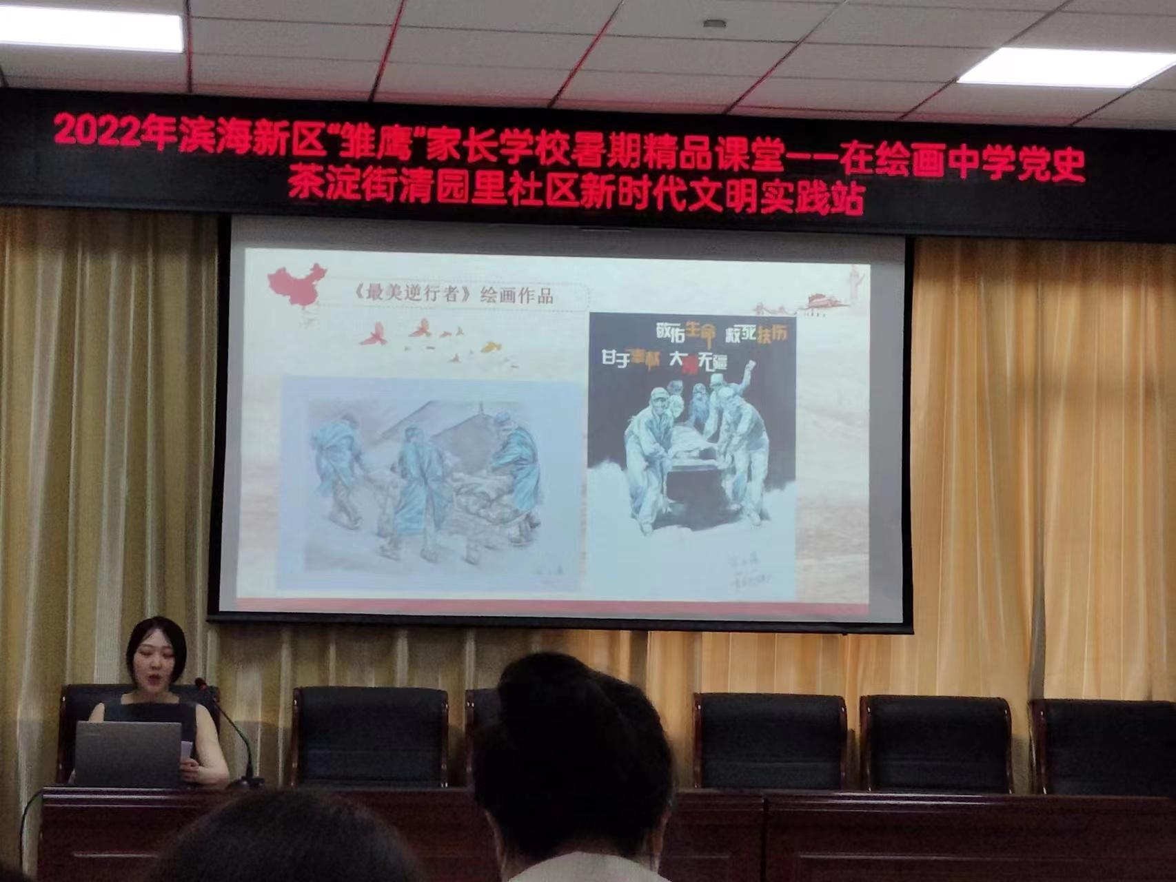 她从“青年兴则国家兴,青年强则国家强”的角度,激发广大青少年立牢为国为民之志,要怀着一份赤子的情怀广泛学习党史,把爱国之情、报国之志化为实际行动,在新时代贡献自己的力量。学生和家长在一幅幅精美的绘画和剪纸作品中,重温了红船精神、西柏坡精神,又听到了雷锋的故事,更是看到了3年来一线医务工作者、社区工作者、志愿者们的抗疫防疫的画面,深刻体会到身边榜样的力量。讲课结束后,毕天叆现场指导孩子们进行“喜迎党的二十大”绘画作品。