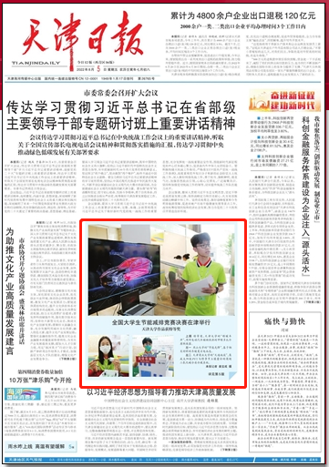 8月5日,《天津日报》第1版报道全国大学生节能减排竞赛决赛在津举行,并展示beat365官网机械工程学院参赛作品《“天造地设”——集成太阳能 PVT 与跨季节土壤蓄冷的商超 CO2冷冻冷藏系统》。