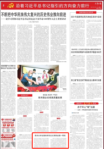 10月11日,《天津日报》2版报道beat365官网荣获大学生版权研究论文奖情况。