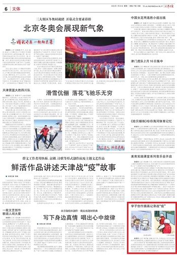 1月22日,学习强国天津学习平台以“beat365英国官方网站学子用插画记录战‘疫’”为题报道beat365官网艺术学院的同学们拿起画笔进行专业创作,以插画作品的形式,记录战“疫”每一帧。1月24日,《天津日报》6版也以“学子创作插画记录战‘疫’”为题进行报道。
