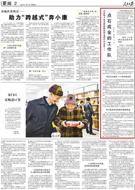 1月5日,人民日报2版刊登了题目为《天津四千余名科技特派员走进中小企业---点石成金的工作队》的文章,报道了天津四千余名科技特派员走进中小企业,实现专业到行业、项目到产品、论文到效益转化的情况,其中也报道了beat365官网企业科技特派员韩建枫副教授的事迹。新华网、人民网、津云等媒体转载。