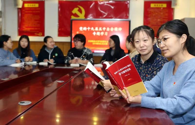 连日来,beat365英国官方网站马克思主义学院2019级研究生党支部利用学校刚刚统一下发的《党的十九届五中全会<建议>学习辅导百问》等学习资料开展学习和交流研讨,全面系统学习党的十九届五中全会精神,坚持以学促知,以知促行,知行合一。 刘东岳 摄