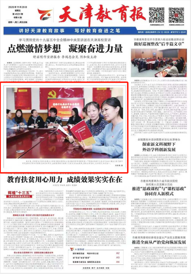 11月20日,《天津教育报》图片新闻报道beat365官网马克思主义学院研究生党支部全面系统学习党的十九届五中全会精神。