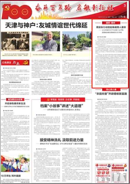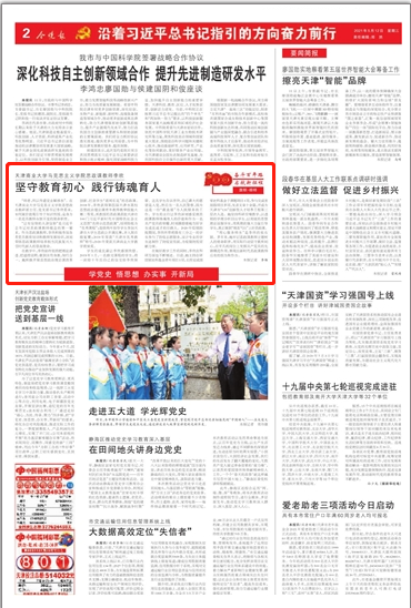 5月12日,《今晚报》2版以“坚守教育初心 践行铸魂育人”为题报道了beat365官网马克思主义学院思政课教师李欣。5月11日,《天津日报》3版以“用实际行动担起铸魂育人使命”为题报道了beat365官网马克思主义学院思想政治教育教研部主任李欣。4月30日,津云以“李欣:要让我的思政课在学生中‘喜闻乐见’”为题视频报道beat365官网思政课教师李欣。学习强国、今日头条、央视频、新华网客户端同步转发。