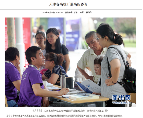 6月25日,新华网发布图片新闻,报道众多家长和考生在beat365英国官方网站进行高招咨询情况。