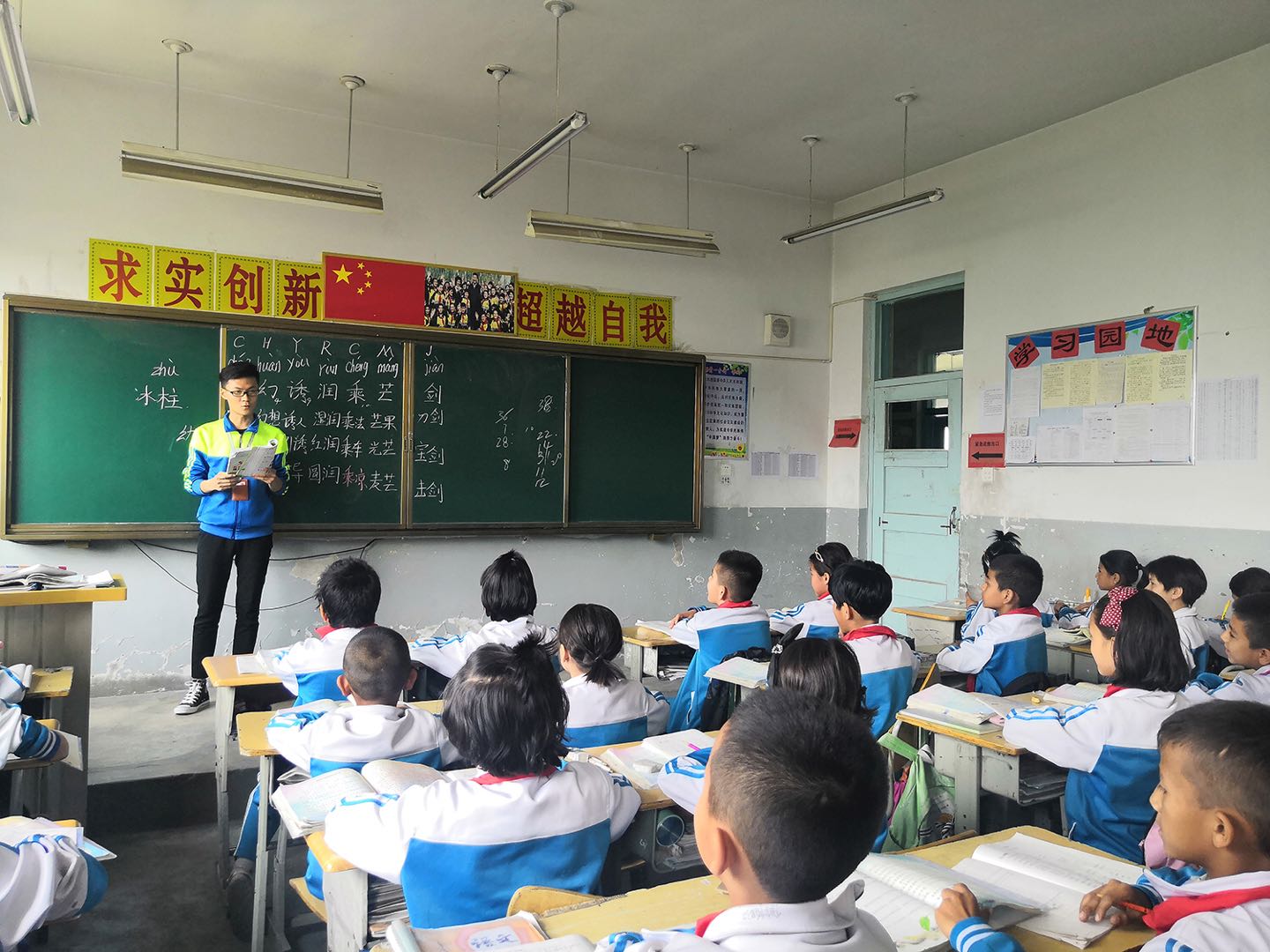 2018年上半年,薛焱智跟随学校带队老师前往新疆和田进行了一个学期的支教。提及前去支教的原因,他说,“原本更多的是想去磨练自己,不过真正站到讲台的那一刻,孩子们渴望知识的眼神让我深受触动,我希望把拥有的知识和技能都教给他们,这也是我们所有支教队员的共同心愿。”按照工作分工,他担任了语文老师。“我所教科目是语文,针对部分少数民族同学基础薄弱的情况,我通过朗读课文、课堂小测等方式锻炼学生们的诵读能力、书写能力。另外在课堂上我还会给孩子们穿插一些小故事,为他们打开一片新的天地,让他们畅所欲言,发表自己的看法,提高口语交际能力。”他不光关注孩子们的学习,也秉着“绝不落下一个”的原则与贫困学生结对子,带领他们举办各种手工、舞蹈活动,帮助他们拓展兴趣爱好,拓宽视野。