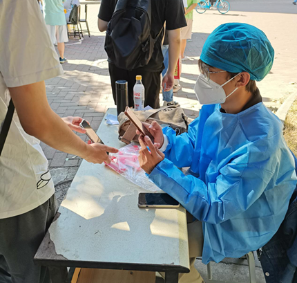 韦纪羽作为18号学生公寓志愿服务站站长,主动上岗5次,共计核酸检测扫码志愿时长16小时。从开始在南区操场当扫码志愿者,再到现在负责18号楼的核酸检测工作,韦纪羽工作越来越熟练。她会提前关注18号楼核酸检测点能否正常开展核酸检测工作,并对第一次上岗的志愿者进行详细的培训,进行全程指导帮助,以确保核酸检测工作圆满完成。