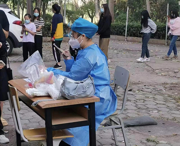 为配合学校做好全市大筛和常态化核酸检测工作,韦姗姗在收到学校征集核酸检测采集信息志愿者的通知时,她积极报名参加志愿者服务活动。在校园疫情防控工作中,她主要负责对所在楼栋进行核酸检测扫码信息登记、维护现场秩序等工作,还协助站长对站点进行志愿者的招募和培训。投身于学校疫情防控工作当中,用实际行动守护学校疫情防控阵地。(审稿:刘桂涛)