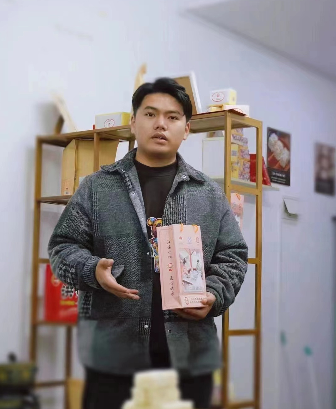 作为土生土长的江西丰城人,胡子童是江南小切的忠实粉丝。上大学后,他时常感怀于这个家乡特色小吃在新时代俨然没有年轻色彩。尤其2020年初,受疫情的影响,“江南小切”冻米糖滞销严重。于是,他萌生了复兴冻米糖的想法,于是他发挥自身优势,组建工作室,从事“江南小切”的商业文化设计、非遗传承。牵头成立产学研基地,利用课余时间进行文创设计、铺设商业模式、打造线上商城。胡子童带领团队深挖江西丰城本土文化,设计了很多具有地域特色的文创产品,带动了年轻消费群体。