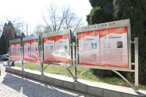 3月25日,“2016年度师德标兵”风采展在一号教学楼前宣传橱窗展出。