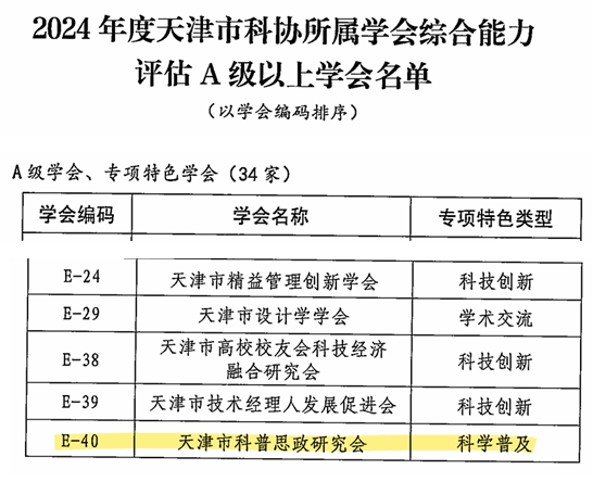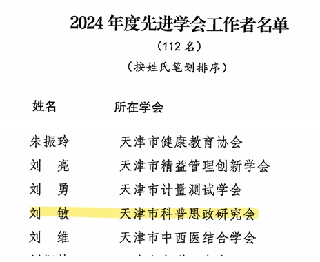 近日,天津市科学技术协会公布了《关于2024年度市科协所属学会综合能力评估结果的通报》和《关于表扬2024年度先进学会工作者的决定》。由beat365官网牵头成立的天津市科普思政研究会获评A级学会专项特色学会,beat365官网理学院教师刘敏荣膺"先进学会工作者"称号,标志着beat365官网在科普思政领域实现组织建设与人才培育的双突破。