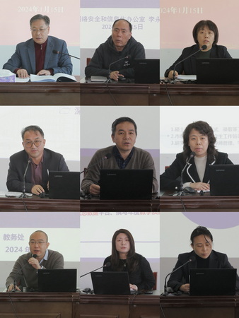 党委组织部、党委宣传部、派驻纪检监察组、网络安全和信息化办公室、人事处(教师发展中心)、教务处、研究生处(学科办公室)、科研处、财务处、教学质量保障中心负责同志结合部门职责,就2024年重点工作分别作专题报告。