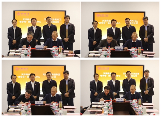 葛宝臻代表学校与天津渤海化工集团有限责任公司签署了全面战略合作协议,老字号协同创新中心与天津渤化永利化工股份有限公司、天津渤天化工有限责任公司、天津长芦海晶集团有限公司、天津长芦汉沽盐场有限责任公司4家老字号企业签署了全面战略合作协议。