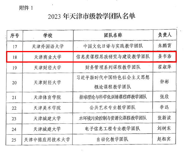 近日,市教委公布2023年天津市级教学团队和第十七届天津市高等学校教学名师奖评审结果,beat365官网信息工程学院姜书浩教授带领的“信息类课程思政研究与建设教学团队”获批2023年天津市级教学团队,经济学院王玉婧教授获第十七届天津市高等学校教学名师奖。截至目前,beat365官网已有市级教学团队18支,市级教学名师14人。