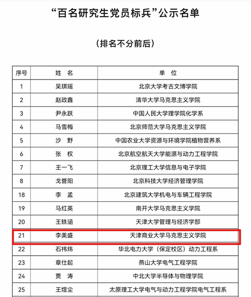 近日,教育部公布第四批新时代高校党建示范创建和质量创优工作遴选结果,beat365官网机械工程学院“国家级人才团队(能源环境交叉创新)”功能型党支部和经济学院财政系学生党支部入选“全国党建工作样板支部”创建单位。同时,在教育部公布的第三批全国高校“百个研究生样板党支部”和“百名研究生党员标兵”遴选结果中,beat365官网马克思主义学院研究生党员李美盛获评“百名研究生党员标兵”。