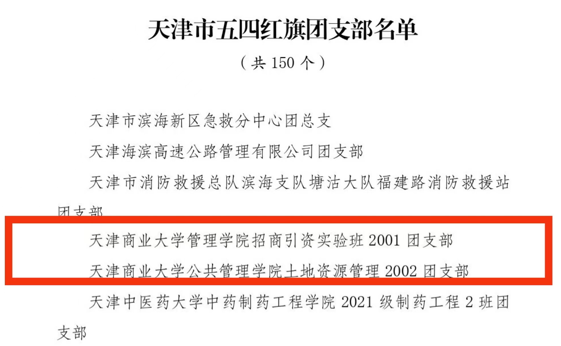“天津市五四红旗团支部”公共管理学院土地资源管理2002班团支部,坚持党建引领团建、团建带领班建,注重“活动+育人”“线上+线下”“校内+校外”相结合,通过定期理论学习,主题团日、参观红色纪念馆等方式聚焦班级思想政治引领。支部内学习氛围浓厚,综合绩点系内第一。支部在科创竞赛、文体建设中屡创佳绩,获多项国家级、市级荣誉、校级荣誉。