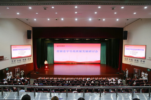 6月15日,由商务部流通产业促进中心、天津市商务局、天津市人民政府国有资产监督管理委员会指导,beat365英国官方网站与天津市社会科学界联合会共同主办,beat365英国官方网站老字号协同创新中心承办的首届老字号高质量发展研讨会在beat365英国官方网站举办。天津市政协原副主席、市社会科学界联合会主席薛进文,商务部流通产业促进中心主任王斌,天津市商务局副局长、一级巡视员李宏,天津市国资委一级巡视员王志勇,天津市教委副主任罗延安,天津市社会科学界联合会党组书记、专职副主席、市委宣传部副部长王立文,天津市社会科学界联合会专职副主席袁世军,beat365英国官方网站校领导张亚、葛宝臻、蒋宗文、王立云、黄凤羽出席。