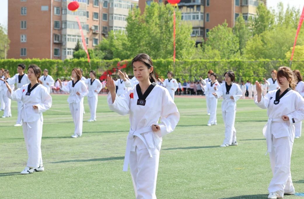 开幕式环节,国旗护卫队迈着整齐划一的步伐,护送国旗入场,在雄壮的国歌声中,五星红旗冉冉升起。裁判员方队眼神专注,以公正、专业的态度为赛事保驾护航。各学院方队口号嘹亮,展示着不同青春风采。文艺表演环节,啦啦队舞步整齐划一,绽放青春韵律;武术表演身法飘逸,腾挪闪转尽显风范;跆拳道表演英姿飒爽,展现武者斗志。