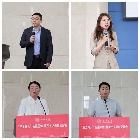 思政课“魅力课堂”代表、马克思主义学院教师贺坤,课程思政优秀教师代表、管理学院教师郑丽霞进行教学展示; 管理育人示范集体代表、机械工程学院“国家级人才团队(能源环境交叉创新)”功能型党支部书记孙昱楠,优秀辅导员代表、生物技术与食品科学学院辅导员王保义进行事迹展示。