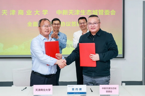 5月8日下午,学校与中新天津生态城管理委员会在环境能源+X创新实验室四层会议厅举行全面战略合作签约仪式。中新天津生态城党委书记、管委会主任王国良,党委副书记、管委会副主任杨勇,校党委书记张亚,校党委副书记、校长陈冠益出席。会议由校党委书记张亚主持。