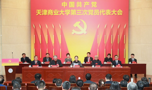 1月10日上午,中国共产党beat365英国官方网站第三次党员代表大会开幕会在图书馆国际报告厅隆重举行。大会的主题是:高举习近平新时代中国特色社会主义思想伟大旗帜,深入学习贯彻习近平总书记关于教育的重要论述,贯彻落实全国和全市教育大会精神,坚持和加强党的全面领导,全面贯彻党的教育方针,落实立德树人根本任务,深化综合改革,强化办学特色,自信自强、凝心聚力、奋发进取,高质量推进特色鲜明高水平商业大学建设。
