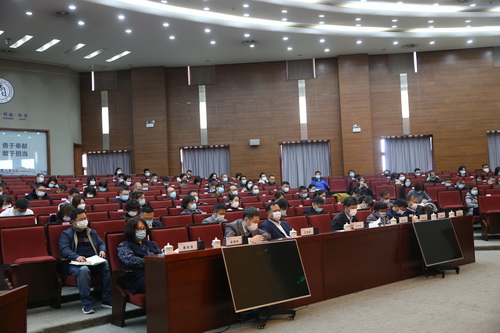 12月6日上午,学校贯彻落实党的十九届六中全会精神学习研讨班在图书馆国际报告厅举行。校党委书记史习红作专题宣讲。校党委副书记、校长葛宝臻主持。校党委副书记卫克武、蒋宗文,派驻纪检监察组组长吴海东,校党委常委、副校长齐恩平、黄凤羽、陈冠益出席。全体中层干部参加。