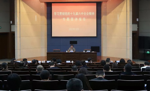 史习红指出,党的十九届六中全会是我们党在成立一百周年的重要历史时刻,在党和人民胜利实现第一个百年奋斗目标、全面建成小康社会,正在向着全面建成社会主义现代化强国的第二个百年奋斗目标迈进的重大历史关头召开的。全会通过的《中共中央关于党的百年奋斗重大成就和历史经验的决议》(以下简称《决议》),是一篇马克思主义的纲领性文献,是新时代中国共产党人牢记初心使命、坚持和发展中国特色社会主义的政治宣言,是以史为鉴、开创未来、实现中华民族伟大复兴的行动指南。全会取得的重大成果、作出的重大部署,对统一全党思想和行动、在新时代更好开创党和国家事业新局面,具有重大现实意义和深远历史意义。