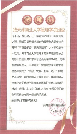管理学院团委收到务川自治县团委感谢信