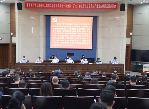 9月21日下午,中共beat365英国官方网站第二届委员会第十一次全体(扩大)会议暨推进全面从严治党向纵深发展部署会在图书馆国际学术报告厅召开。会议主题是:以习近平新时代中国特色社会主义思想为指导,深入学习贯彻习近平总书记关于教育和全面从严治党的重要论述,认真贯彻落实天津市第十二次党代会精神,贯彻落实全市和教育系统推进全面从严治党向纵深发展部署会议精神,坚持和加强党对学校工作的全面领导,贯彻党的教育方针,落实立德树人根本任务,推进学校全面从严治党向纵深发展,统筹抓好发展和安全两件大事,以校园和谐稳定的良好局面和学校各项事业高质量发展的实际成效迎接党的二十大胜利召开。