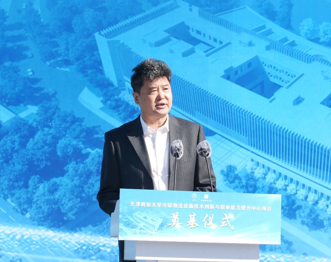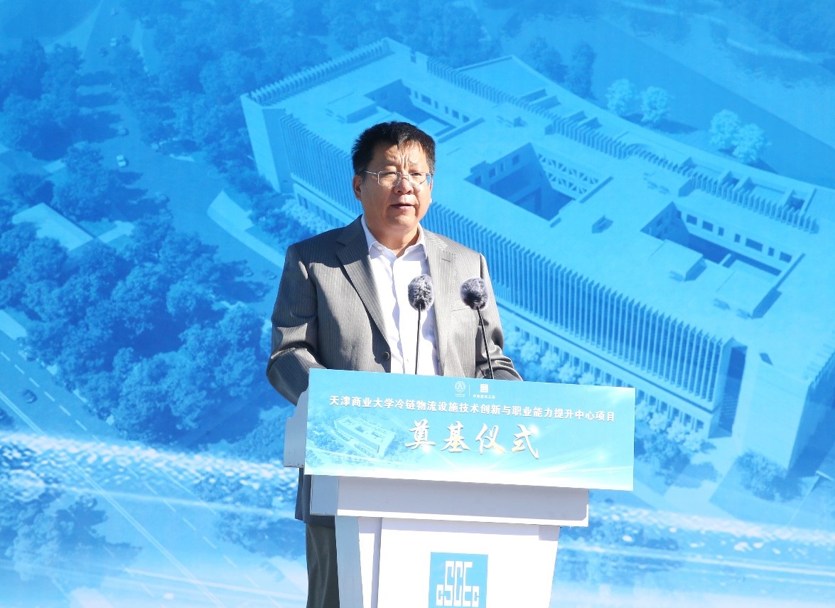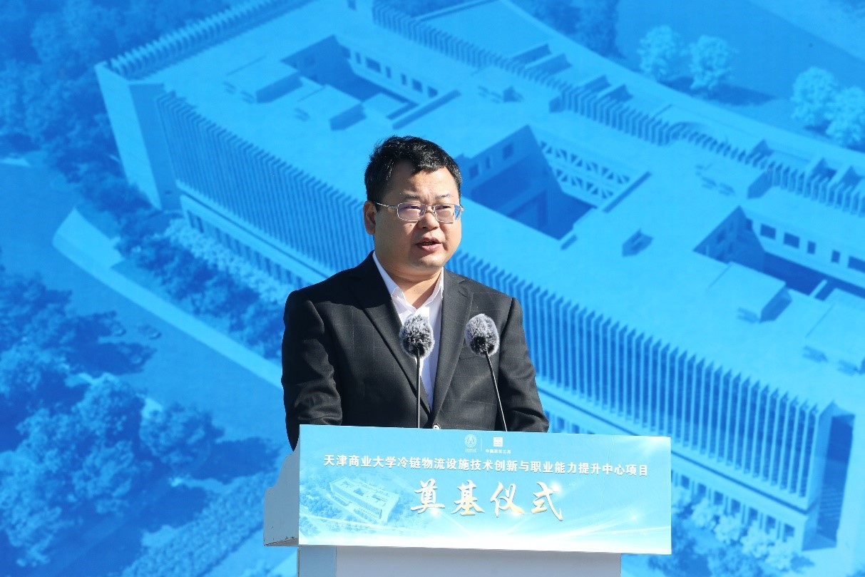 校长葛宝臻在致辞中首先向参加奠基仪式的各位领导及来宾表示热烈的欢迎。他对项目建设提出四点希望和要求。一是要确保质量,打造精品工程。冷链中心是学校建校以来单体投资最大、建筑面积最大的标志性建筑,是集人才培养、科研创新、服务社会于一体的多功能平台,将来使用的是我们的下一代,可以说是民心工程,因此承建单位和监理单位、学校相关部门要各司其责,遵循建设工程规范、技术标准、质量规程,把好质量关,将项目建设成为良心工程、精品工程。二是要确保工期,打造守时工程。冷链项目得到了地方政府专项债券资金支持,项目列为天津市重点建设工程建设项目,列入国家重大建设项目库管理,对工程进度要求非常严格。学校资源比较紧张,广大师生迫切期盼能够尽快使用大楼。施工单位要合理安排施工方案,精心组织施工,确保工程进度,在规定期限内按时完工,按时交付使用。三是要确保安全,打造平安工程。安全责任重于泰山。当前疫情风险下,首要确保防疫安全。学校为项目建设安排专用施工区域,与校园硬隔离。要严格按照教育两委要求落实好疫情防控措施,不发生疫情。要确保消防安全、人身安全、施工安全,参建单位要严格落实施工管理,严格落实安全生产责任书的各项内容,不出安全事故。四是要确保干净,打造廉洁工程。基建工程项目是廉政风险关键点之一,建设方、承建方、监理单位要遵守法律法规和廉洁规定,不能“楼起来、人倒下”,要牢固树立廉洁意识,严守纪律底线,做到干净履职、廉洁干事,依法依规进行项目管理,打造廉洁工程。