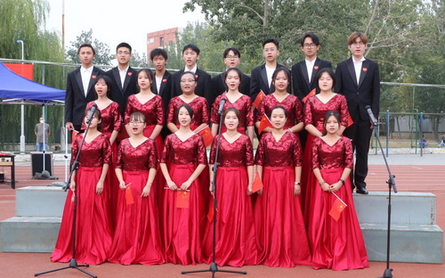 仪式最后,在校合唱团的领唱下,现场师生一起挥舞手中的国旗,饱含深情齐声合唱《我和我的祖国》,用歌声礼赞祖国母亲七十三岁华诞,向伟大祖国献上天商师生最衷心的祝愿。(审稿:郭景旺)