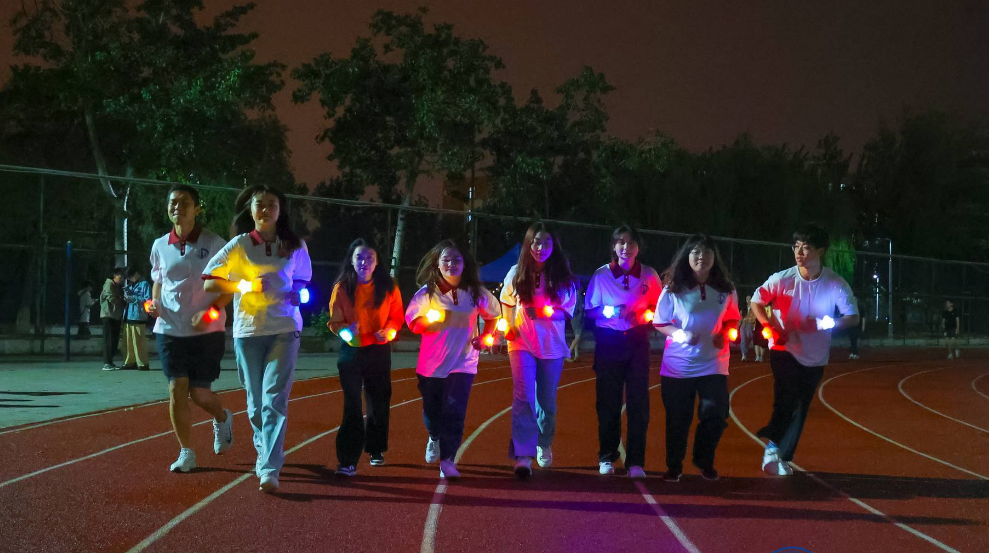 10月1日晚,信息工程学院举办“庆国庆 赴美好未来”荧光夜跑活动,学院100余名学生在校田径场集合,完成10.1公里接力跑。活动现场,伴着歌曲《我和我的祖国》,“星光手环”在奔跑中划过一道道美丽的弧线,成为当晚田径场上的焦点,在操场活动的同学纷纷驻足观看,有的学生自发加入夜跑活动,共同感受节日气氛。