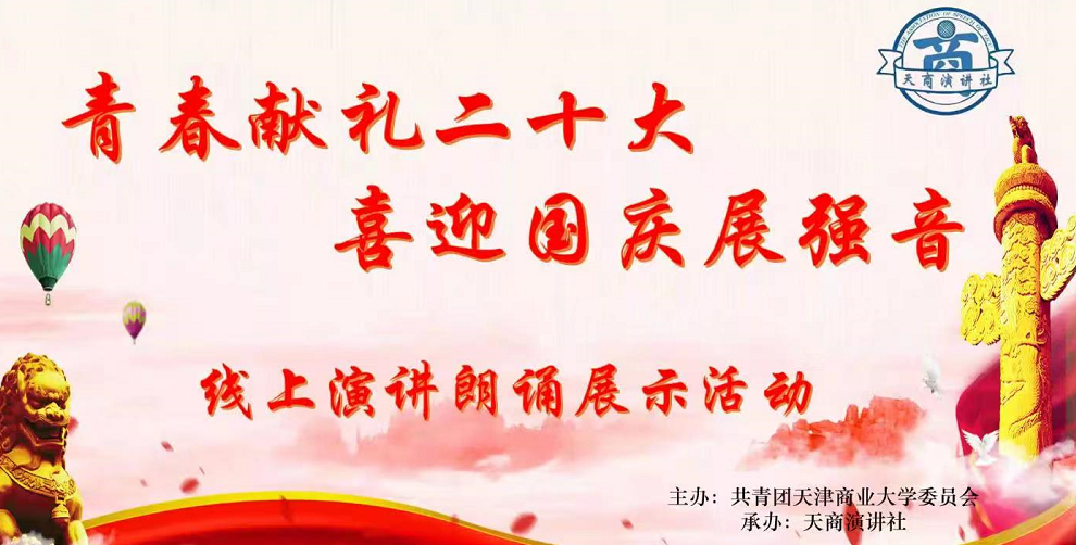 10月1日下午,校团委通过线上形式组织举办 “青春献礼二十大 喜迎国庆展强音”线上演讲朗诵展演活动。《沁园春•雪》《少年中国说》《请党放心,强国有我》等11个作品通过“云舞台”精彩上演,200余人参与活动。大学生艺术教育中心指导教师邢素军、马克思主义学院副教授贾国华、天商演讲社等师生代表用铿锵有力、声情并茂的演讲朗诵为新中国成立73周年送上真挚的祝福。