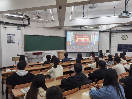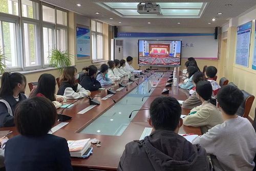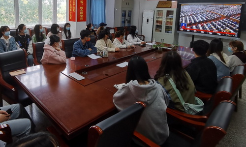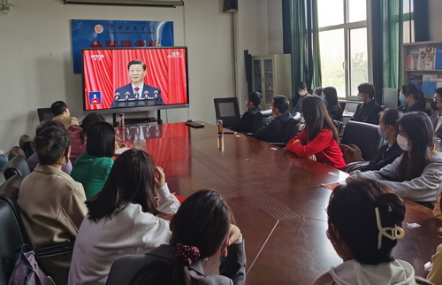 广大师生一致认为,习近平总书记的报告高屋建瓴、思想深邃、主题鲜明、内容全面,明确宣示党在新征程上举什么旗、走什么路、以什么样的精神状态、朝着什么样的目标继续前进,是开启新征程的纲领性文献。一致表示,要深入学习贯彻党的二十大精神,更加紧密地团结在以习近平同志为核心的党中央周围,深入贯彻习近平新时代中国特色社会主义思想,牢记空谈误国、实干兴邦,坚定信心、同心同德,埋头苦干、奋勇前进,为全面建设社会主义现代化国家、全面推进中华民族伟大复兴不懈奋斗。