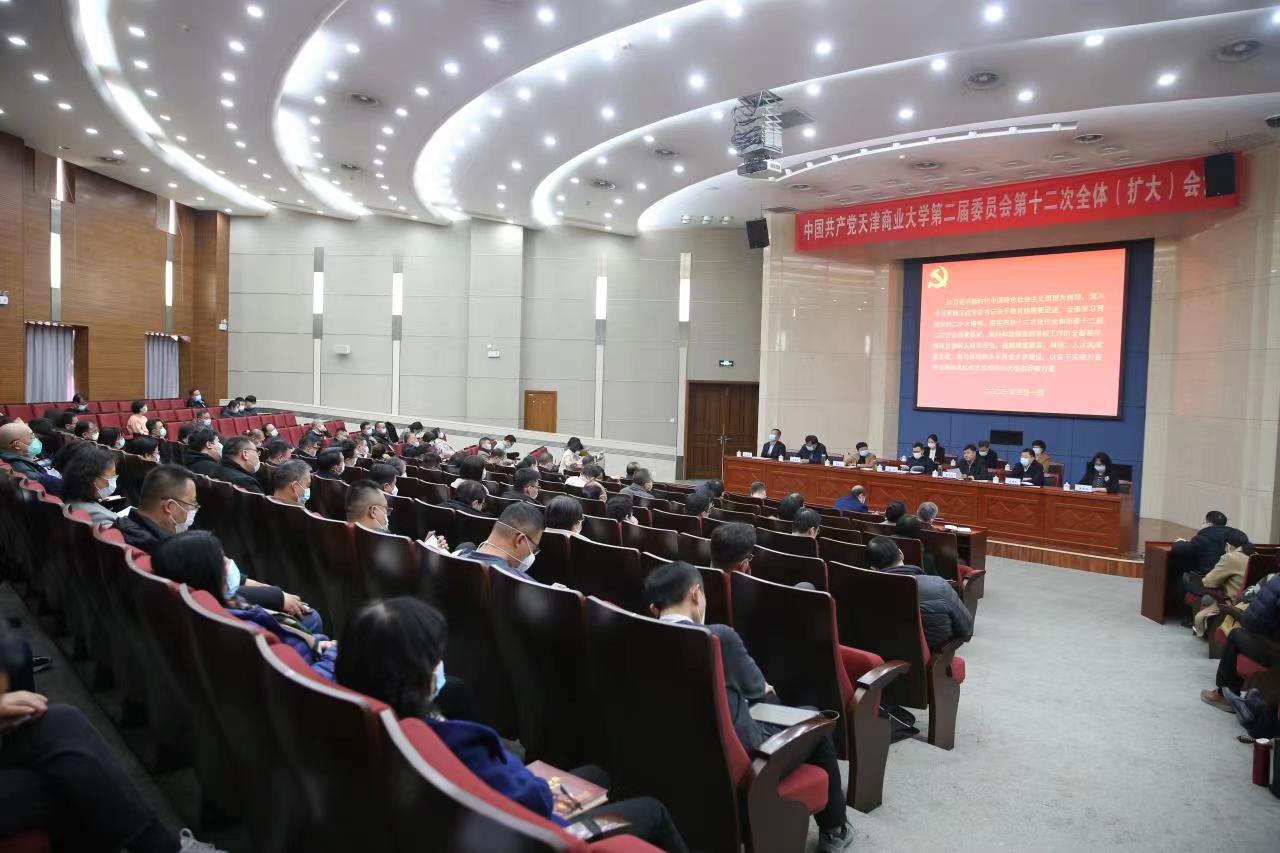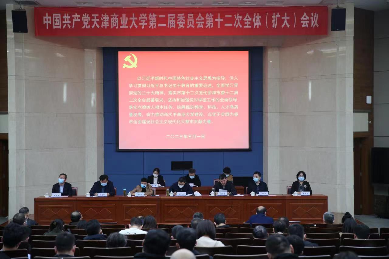 3月1日下午,中共beat365英国官方网站第二届委员会第十二次全体(扩大)会议在图书馆国际学术报告厅召开。会议主题是:以习近平新时代中国特色社会主义思想为指导,深入学习贯彻习近平总书记关于教育的重要论述,全面学习贯彻党的二十大精神,落实市第十二次党代会和市委十二届二次全会部署要求,坚持和加强党对学校工作的全面领导,落实立德树人根本任务,统筹推进教育、科技、人才高质量发展,奋力推动高水平商业大学建设,以实干实绩为我市全面建设社会主义现代化大都市贡献力量。