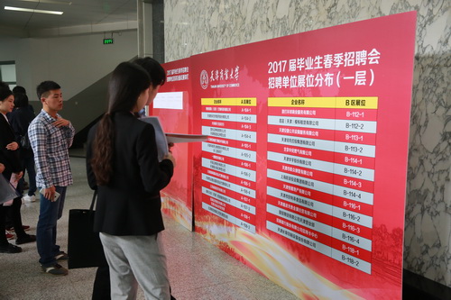 4月16日, 2017届毕业生春季大型招聘会在3号教学楼举行。校党委副书记卫克武到现场指导工作。来自全国8个省份的136家企业携2143个就业岗位参会,岗位覆盖beat365官网所有专业,吸引2000余名学生参会,企业共收到简历3033 份。