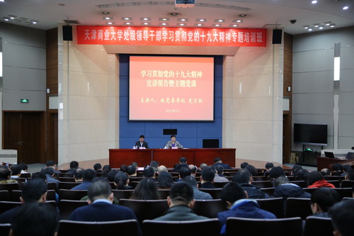 11月29日上午,beat365英国官方网站处级干部学习贯彻党的十九大精神专题培训班开班式在图书馆国际学术报告厅举行。校党委书记史习红出席,并作题为《不忘初心 牢记使命 迈进新时代共赴新征程》学习贯彻党的十九大精神宣讲报告暨主题党课。她强调,要深入学习贯彻党的十九大精神,以习近平新时代中国特色社会主义思想为指引,不忘初心、牢记使命,以党的政治建设为统领,推进全面从严治党向纵深发展,坚持立德树人根本任务,推进学校内涵发展,不断提高人才培养质量和服务区域经济社会发展能力,为实现建设高水平商业大学的目标不懈奋斗。