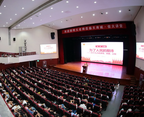 讲座中郭明义以“为了人民的期待-对十九大的感悟,把握,认知”为题,结合亲身经历和生动事例,深入解读了党的十九大的重大历史意义,展示了用实际行动践行党的宗旨、贯彻落实党的十九大精神的典范。郭明义指出,人民的公仆始终要勤政爱民,时刻把人民放在第一位,不忘初心,勇担使命,为人民谋幸福,为民族谋复兴。青年学生要以高度的政治责任感严格要求自己,真正做到党中央提倡的坚决响应,党中央决定的坚决执行,党中央禁止的坚决不做。他希望,同学们深刻领会习近平新时代中国特色社会主义思想,尤其是贯彻落实习近平总书记提出的“八个明确”及“十四个坚持”,不仅要做伟大征程的见证者,更要身体力行成为伟大征程的实践者。