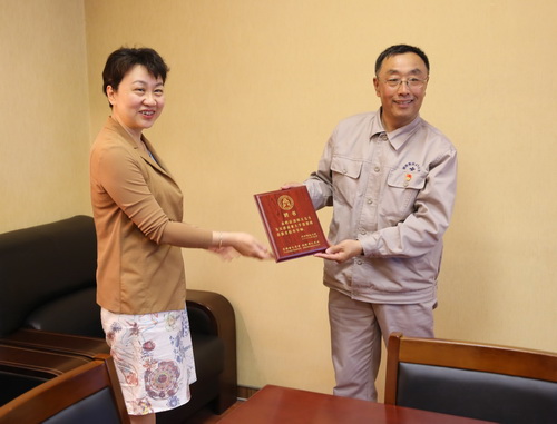 校党委书记史习红为郭明义颁发“beat365英国官方网站思想政治教育校外导师”聘书