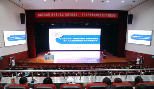 5月30日下午,天津市人大代表、校党委副书记、校长葛宝臻以“学习宪法知识 增强宪法意识 弘扬宪法精神”为主题,在科学会堂作宪法专题宣讲。师生代表900余人参加宣讲会。