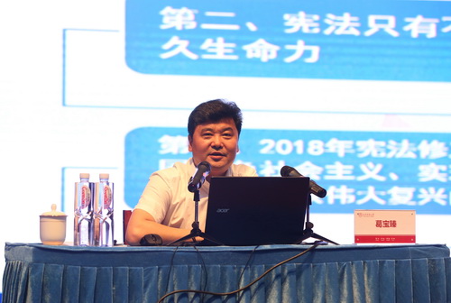 葛宝臻从宪法修改的重大意义、宪法修改的过程、2018年宪法修正案的核心要义和精神实质、加强宪法学习宣传和贯彻实施工作四方面作了宣讲。重点针对宪法修正案中确立习近平新时代中国特色社会主义思想在国家政治和社会生活中的指导地位,充实坚持和加强中国共产党全面领导的内容,调整中国特色社会主义事业总体布局、第二个百年奋斗目标,完善依法治国和宪法实施举措,修改国家主席任职方面有关规定,增加有关监察委员会的各项规定等具体内容作了深入讲解。他讲到,对宪法进行适当修改,充分体现党和人民的共同意志,充分体现新时代坚持和发展中国特色社会主义取得的发展成果,充分体现中国特色社会主义制度的优势。