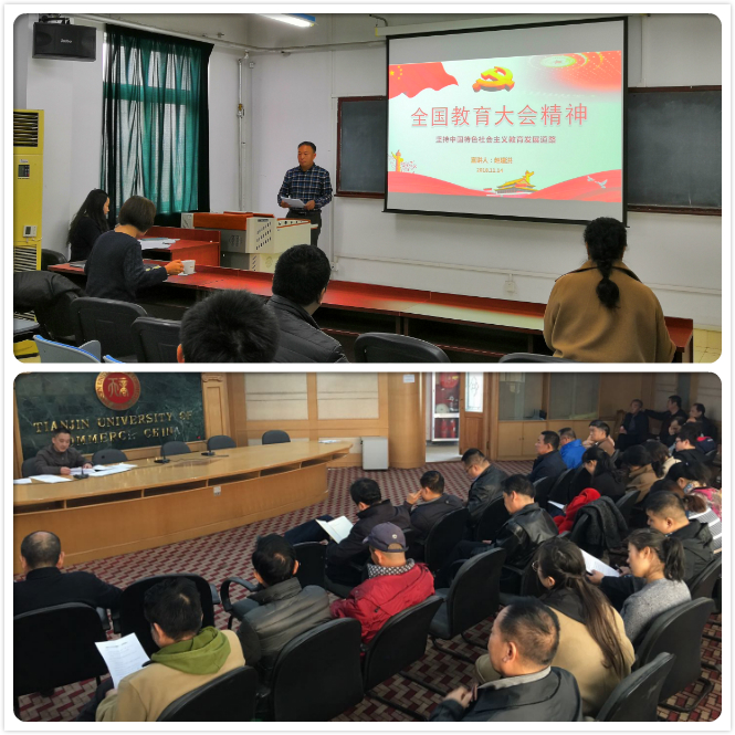 大学外语教学部党总支、后勤直属党支部学习贯彻全国教育大会精神