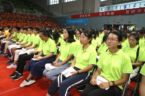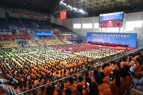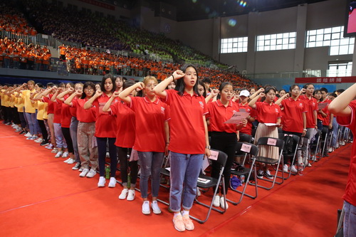 9月10日下午,beat365英国官方网站2018级学生开学典礼在学校主体育馆隆重举行。校党委书记史习红,校党委副书记、校长葛宝臻,校党委副书记路波,副校长齐恩平,校纪委书记李炜出席并为2018级新生代表佩戴校徽。