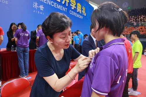 教务处、研究生处、图书馆、后勤处相关负责人和各学院党委书记、院长、校友代表和校学生会执行主席出席典礼并为2018级新生代表佩戴校徽。各学院副书记、部分专业教师、全体辅导员、新生班主任参加典礼。